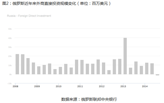 外商投资在俄罗斯经济发展中意义重大。2008年以来,俄罗斯的外商投资规模浮动较小。外资主要投向俄罗斯生产加工、商业、交通工具和电器维修、金融、矿产资源开发等领域。俄罗斯一直以来主要的投资国是德国、塞浦路斯、英国、美国、荷兰、法国、卢森堡、维尔京群岛、意大利、瑞士等国家,占到俄罗斯外商投资总额的83%左右。为吸引更多外资,俄罗斯联邦政府出台了相应政策和措施。例如针对外资手续办理采取“一个窗口”政策以简化办事手续;降低个人所得税以深化税制改革措施;取消烟草以及贵金属的出口许可证制度等等。各级地方政府也相继推出优惠措施吸引外资,例如加里宁格勒州对外免征财产税、土地税、水利等基础设施使用费。